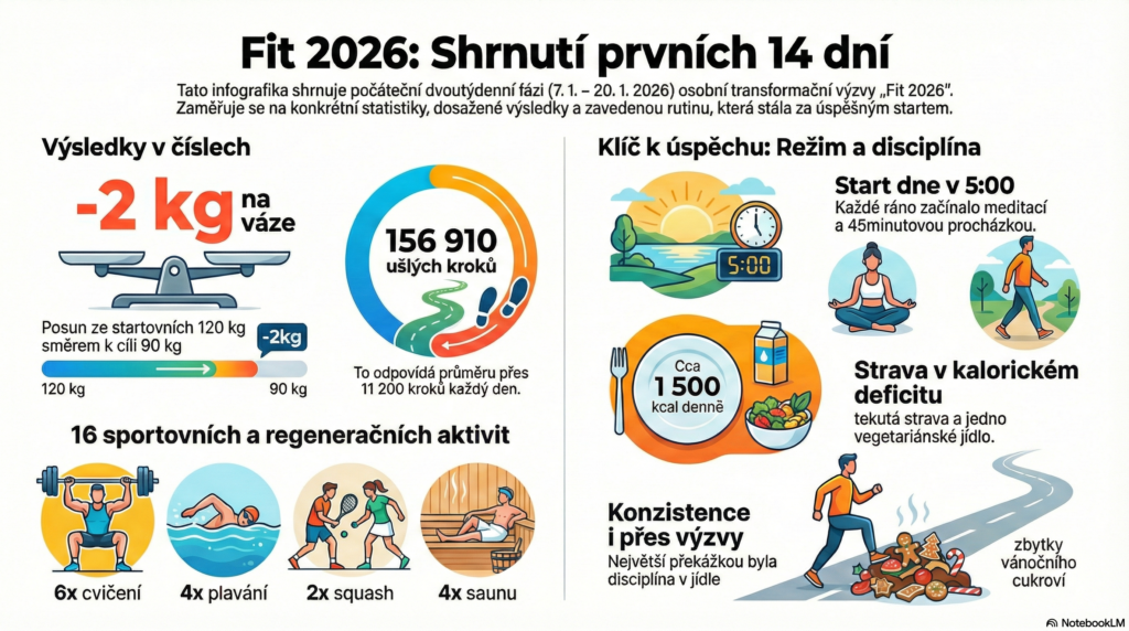 První dva týdny mé výzvy Fit2026 jsou oficiálně za mnou a s radostí můžu nahlásit úbytek 2 kg.